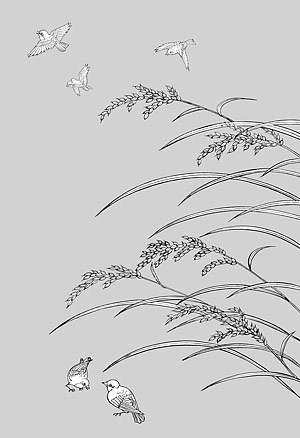 Vector line drawing of flowers-33(Rice, birds)