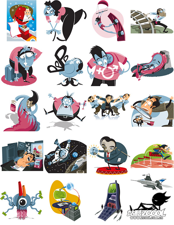 eps format, including jpg preview, keyword: Vector exaggeration, funny, cartoon, characters, Santa Claus,ΆρΈγ, fighter planes, telephones, Astronaut, sleep, vector material