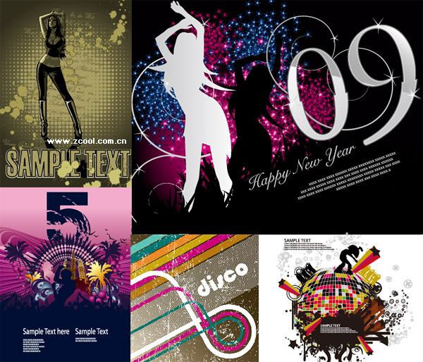 eps format, including jpg preview, keyword: Vector music, party, trend, women, figure, the trend of the design, fantasy, sparkling, crystal ball, nightclub, disco, coconut tree, female silhouette, dynamic lines, vector material